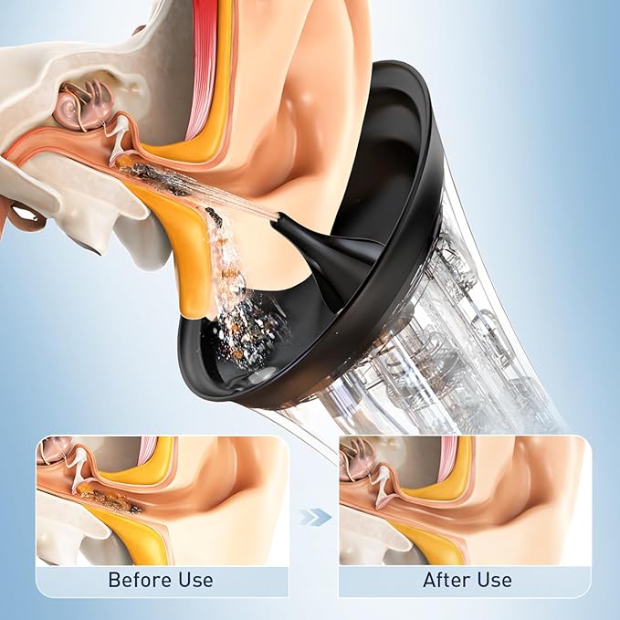 [Integrated Dual Tank Design] - Our ear cleaning system features an innovative integrated dual tank design, providing a more convenient and hassle-free ear cleaning experience. Unlike traditional ear washers that require you to rinse while trying to catch the dirty water with another hand, our ear washer is equipped with a clean water tank and a separate tank for collecting the dirty water, making the cleaning process effortless and efficient.