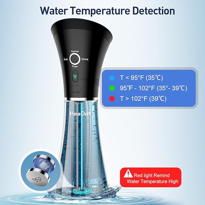 [Intelligent Water Temperature Detection] - Our ear cleaning kit incorporates an intelligent water temperature detection system. A green light indicates the proper water temperature, a blue light indicates low water temperature, and a red light indicates high water temperature. This ensures your safety and comfort throughout the ear cleaning process.